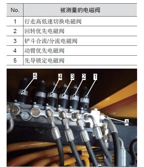 5. 全油門運(yùn)轉(zhuǎn)發(fā)動(dòng)機(jī),然后通過操作操縱桿打開或關(guān)閉每個(gè)電磁閥,并測(cè)量壓力。