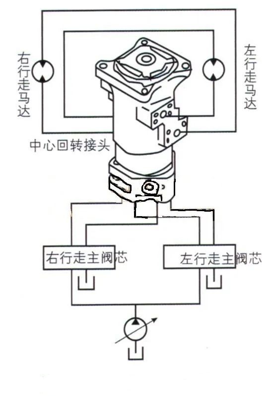 挖掘機行走主閥閥芯卡滯、閥內(nèi)彈簧變軟或折斷,均可造成挖掘機行走動作失靈,導(dǎo)致挖掘機行走跑偏。