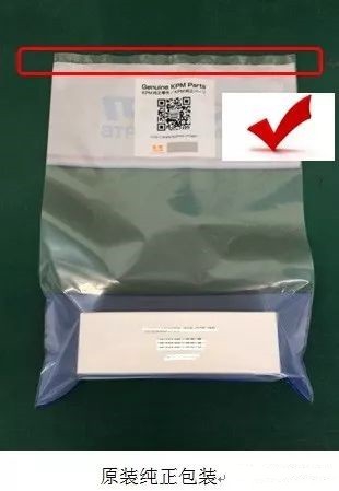 而那些企圖再利用川崎純正品包裝袋的不法商家,會(huì)將透明塑封口剪去后,重新塑封到白色區(qū)域。