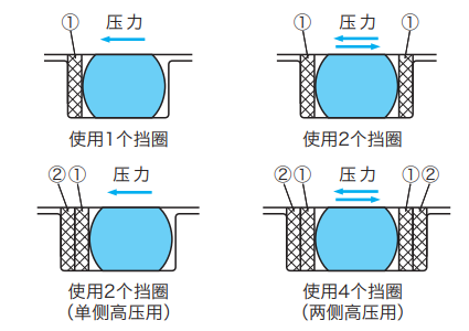 當(dāng)工作壓力小于9.8MPa時(shí)一般不設(shè)計(jì)擋圈,當(dāng)壓力大于9.8MPa時(shí)O型橡膠密封圈承壓面易被擠出。