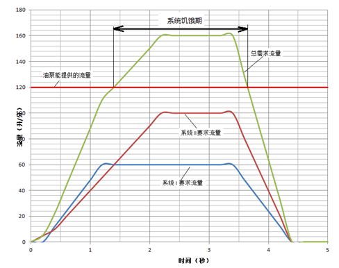 1:系統(tǒng)可以提供飽合流量,用前置式壓力補償,不論回路的負載壓力如何變化或其他回路的負載壓力變化,回路的控制流量不變,如下圖;