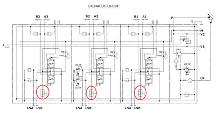下圖中的梭閥就是用來比較每一聯的輸出流量和壓力,然后再通過LS口反饋到柱塞泵。