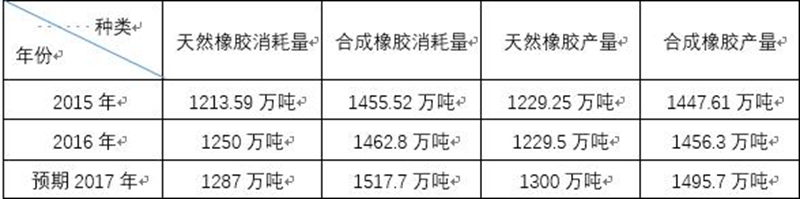 2016年全球天然橡膠消耗量達1250萬噸,增長率為3%;2017年全球天然橡膠消耗量預(yù)計為1287萬噸,增長率約為2.9%。