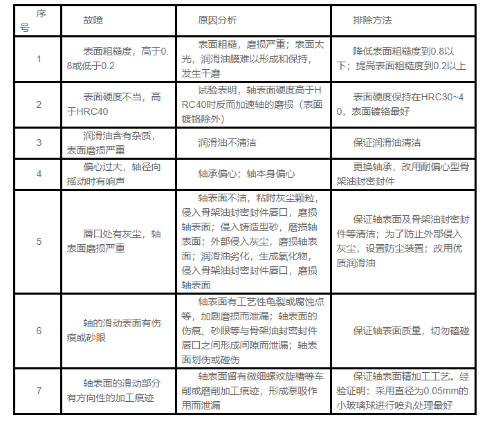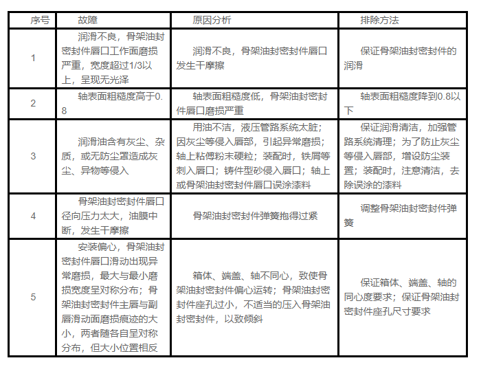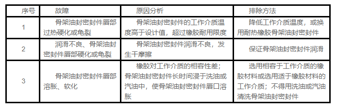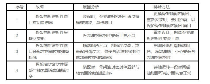 在有效使用期限內(nèi),微量的泄漏是允許的,否則,必須按照下述骨架油封密封件的常見(jiàn)故障原因及排除方法進(jìn)行處理。