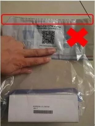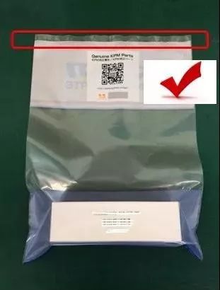如下圖所示,純正品包裝袋最上方有一段透明封口區(qū)域,而那些企圖再利用川崎純正品包裝袋的不法商家,會(huì)將透明塑封口剪去后,重新塑封到白色區(qū)域,若沒(méi)有認(rèn)真觀(guān)察是無(wú)法看出。