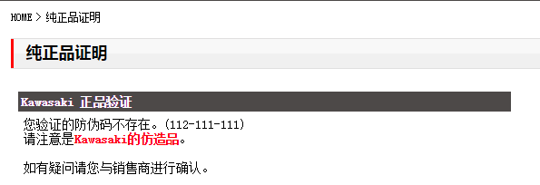 望廣大用戶(hù)提高警惕,在購(gòu)買(mǎi)川崎純正品時(shí),積極刮開(kāi)涂層防偽碼,在川崎官方網(wǎng)站上進(jìn)行純正件驗(yàn)證,還需仔細(xì)留意包裝袋是否有再利用痕跡。